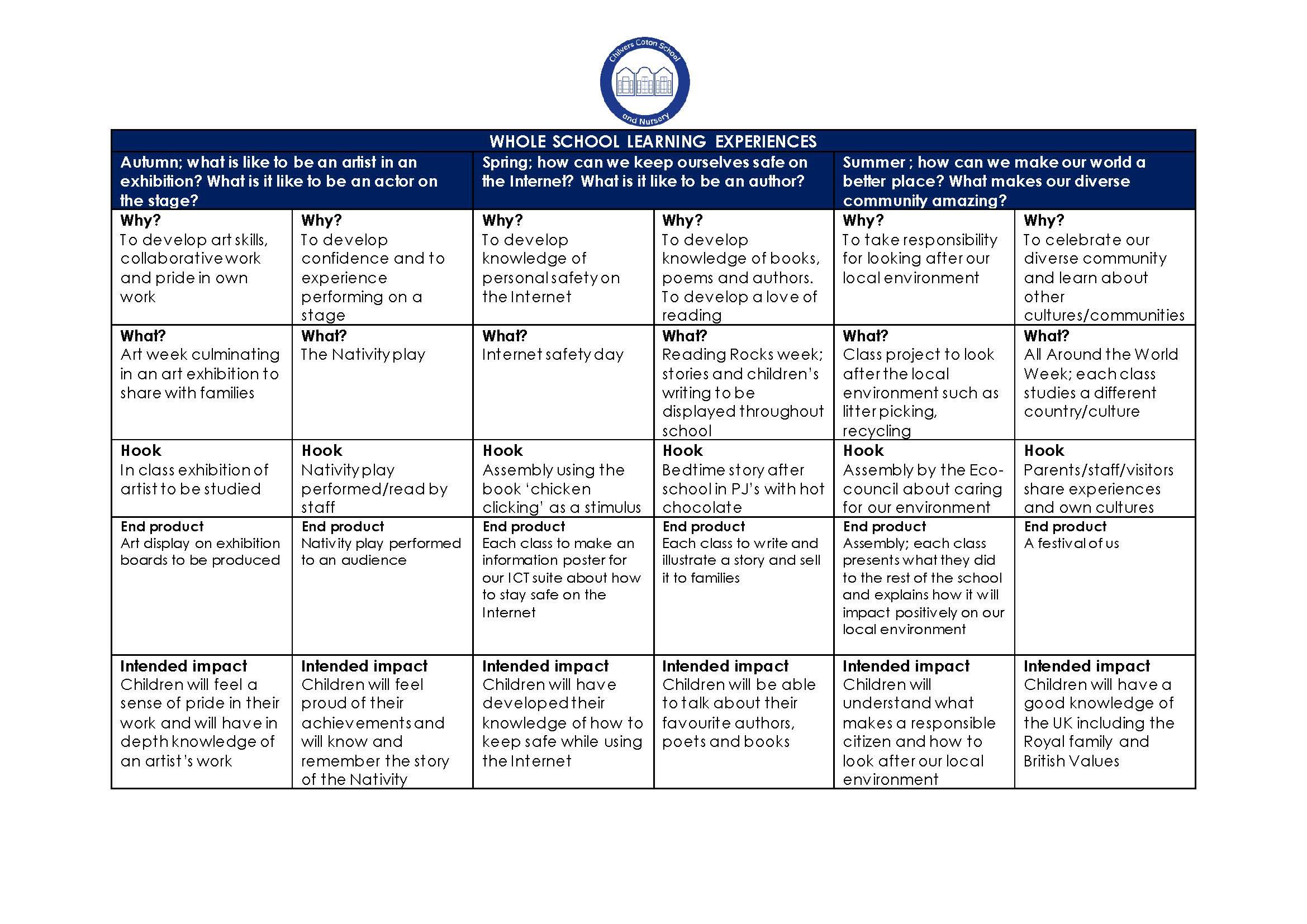 Our school curriculum is delivered through half termly themes which begin with an immersion day, offering first hand experiences and a knowledge harvest to ascertain what children already know about a theme and any questions they may wish to explore in a theme. All of our themes are presented as learning questions so that teachers can assess at the end of a theme if children can answer the question based on the knowledge they have gained during the theme.